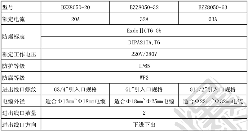 * 外壳为增安型结构,采用玻璃纤维不饱和聚酯树脂压制而成,外型美观,耐腐蚀、耐冲击及热稳定性好等优良性能;