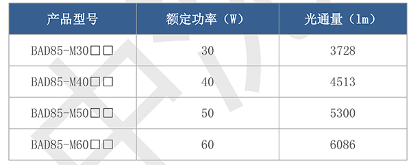 * 专业设计的配光系统,光效高、利用率高、配合合理、照度均匀;